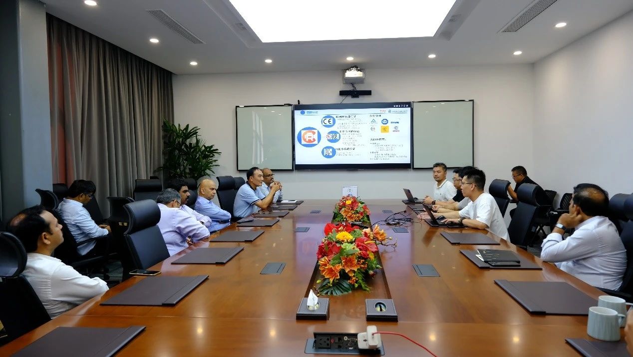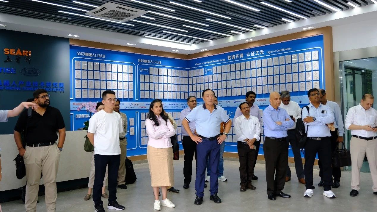 7月24日,印度塔塔集团(Tata Group)代表团一行到访leyu.乐鱼(中国)机器人有限公司官网(以下简称”上研院“),实地参观机器人检测试验室、智能创新研发实验室、具身智能机器人数据训练测评试验室,重点了解国家机器人检测与评定中心(总部)职能、行业标准制定与检测认证服务等工作进展,并就中国机器人认证(以下简称”CR认证”)体系及国际互认机制展开深入交流,上研院副院长周梅杰热情接待。