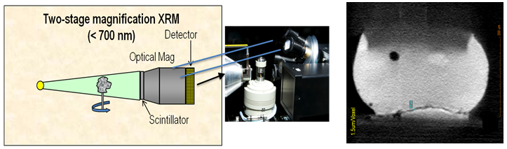 传统的微米CT采用平板探测器,利用几何放大实现对样品的放大扫描。而Zeiss Xradia 采用光学加几何两级放大的架构对样品实现放大扫描,不需要完全依赖高的几何放大就可以实现0.7um的空间分辨率。