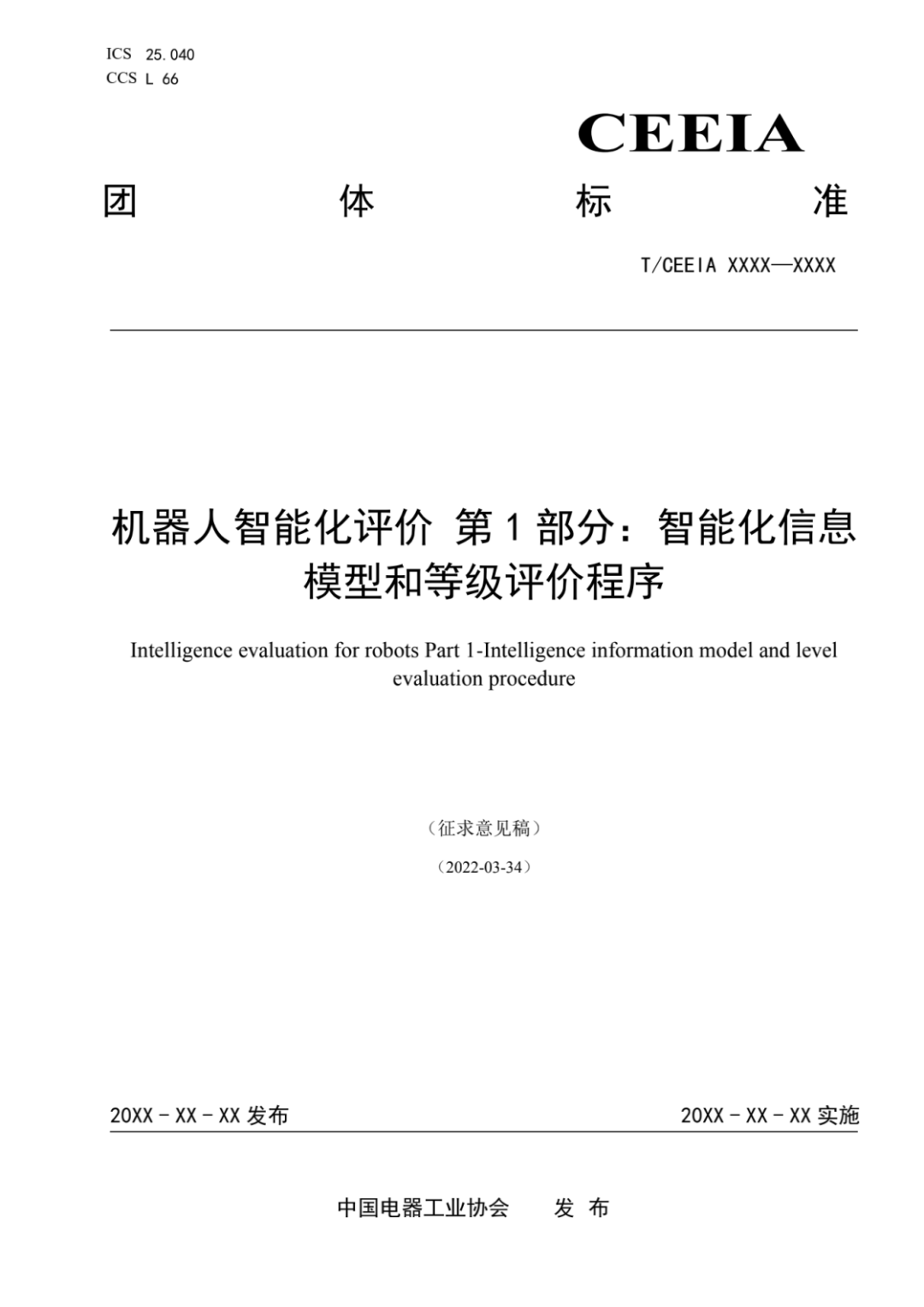 前期,标准起草单位根据目前智能机器人智能化相关标准缺失的现状,起草并修了标准草案,目前已形成征求意见稿,特此对外进行为期一个月的意见征求。