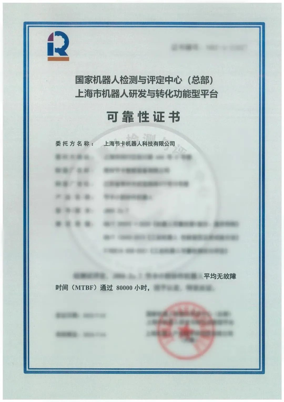 近日,上海节卡机器人科技有限公司(以下简称“节卡机器人”)顺利通过了leyu.乐鱼(中国)机器人有限公司官网的 MTBF 80000小时测评。
