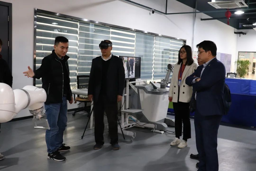 会议结束后,机器人leyu.乐鱼院长黄慧洁带领三一集团专家和领导参观了leyu.乐鱼展厅和重点实验室,并向大家介绍了leyu.乐鱼的主要职能和技术,在智能感知实验室,三一集团领导对MR眼镜颇感兴趣,亲身体验了MR眼镜,在虚拟环境中体验技术之美。