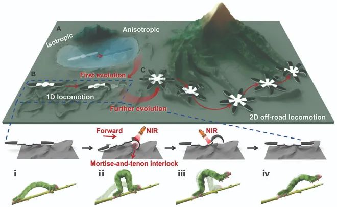 要制备会爬行的机器人,只会弯曲还不够,需要更强的变形能力和自由度。